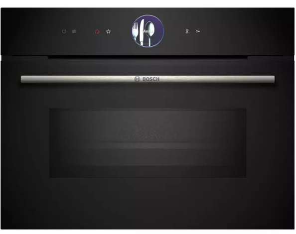 Enjoy tasty home cooking without all the faff. This Bosch combination microwave’s Digital Control Ring does away with clunky knobs and dials. Just slide your finger over the engraved ring to adjust the settings and confirm with a simple tap. On top of that, the high-resolution TFT Touch Display guides you through each cooking function with clear information and pictures. It couldn’t be simpler. And with 4D HotAir, you can bake or roast on different shelves at the same time. It blows hot air all around the inside of the cavity so your meals are cooked evenly from top to bottom.
