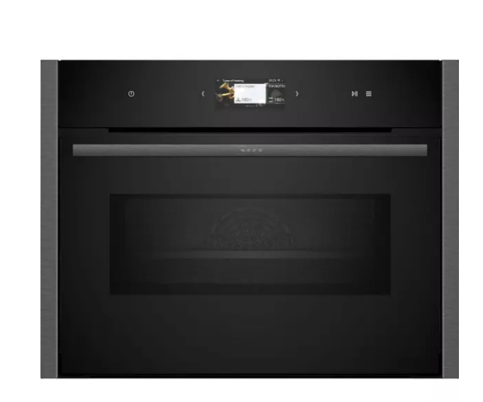 Tired of tons of appliances cluttering your counter? This Neff N90 works as both a microwave and an oven, so you can slowly cook your chicken for hours or prepare a fresh batch of popcorn in minutes. Hands covered in flour? Ask Alexa to set the temperature for you. Just connect it to the Home Connect app via WiFi and manage everything from your phone. Easy!